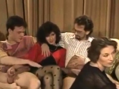 Vintage group sex with two brunettes