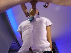 Young ladyboy beauty Nat blowjob before bareback ass fucking